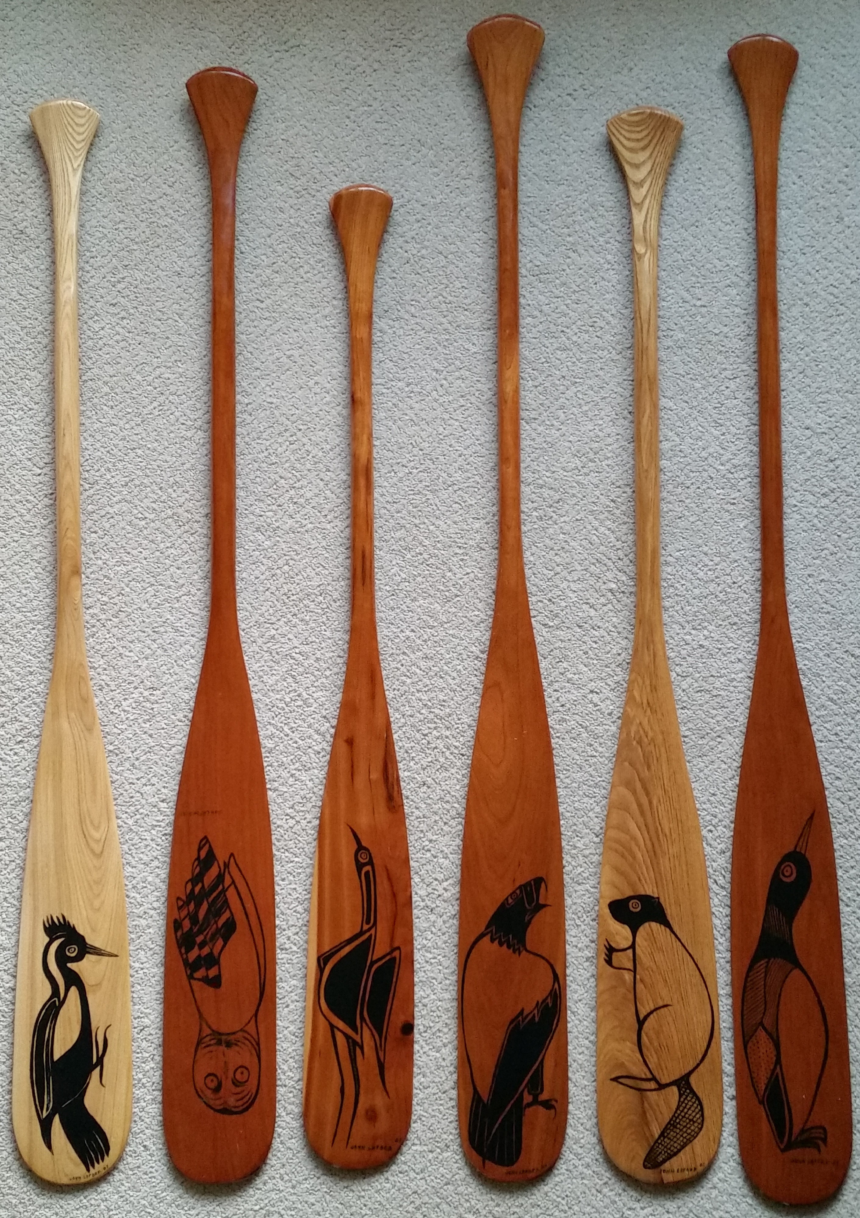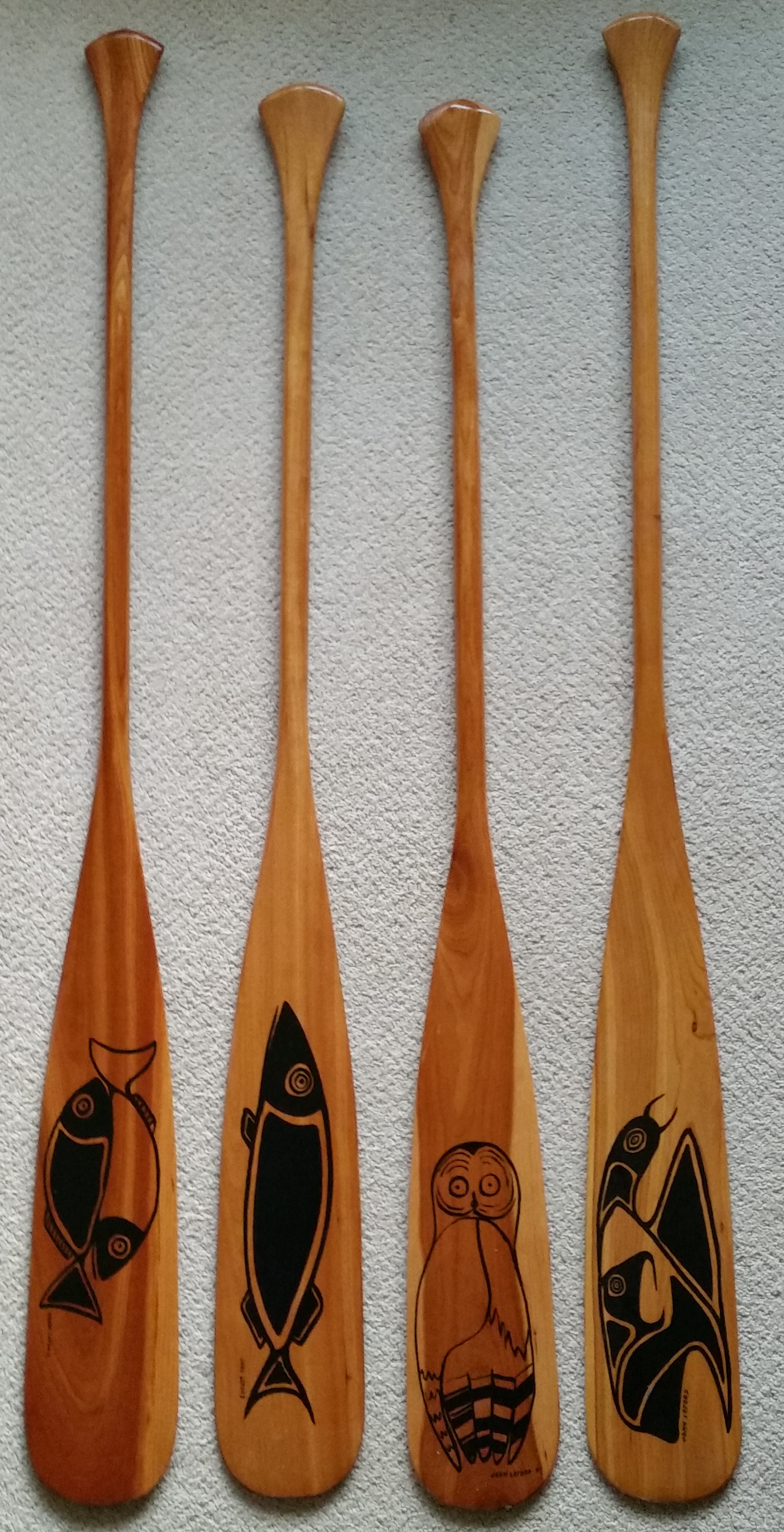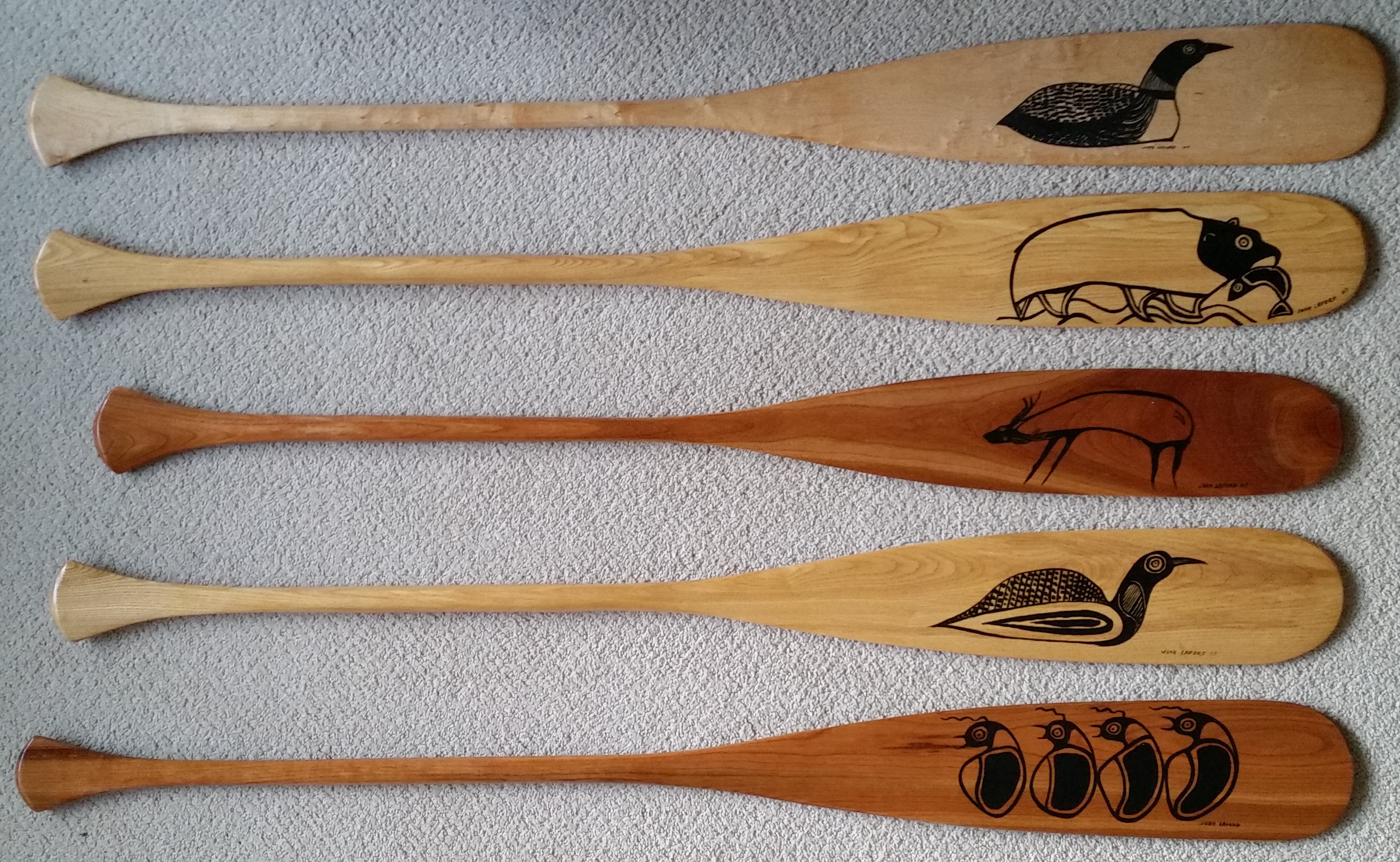 Many designs available! New paddles receive 3 coats of hard gloss varnish that allows them to be fully functional. They can be used by avid canoeists, for corporate gifts, and adorned on walls.